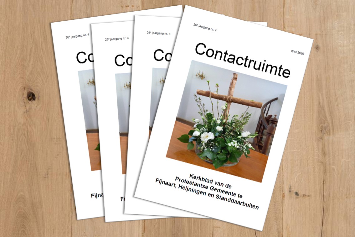 Contactruimte is het kerkblad van de Protestantse Gemeente te Fijnaart, Heijningen en Standdaarbuiten. U kunt Contactruimte ook via deze website inzien. Het Kerkblad wordt 10 keer per jaar uitgegeven. Inleveren van kopij is mogelijk via kerkblad@pknfijnaart.nl.
